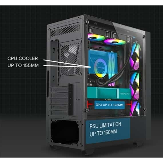 PRODUCT NAME: EDGE (6650) MATERIAL: TEMPERED GLASS AND STEEL MOTHERBOARD SUPPORT : M-ATX & MINI ITX POWER SUPPLY: ATX PSU 1/0 PANEL: USB2.0 *2 +USB3.1 +HD AUDIO FAN SUPPORT: - FRONT:3x120MM or 2×140MM (OPTIONAL) - REAR:1X120MM (INCLUDED) - TOP:2×120MM or 2×140MM (OPTIONAL)