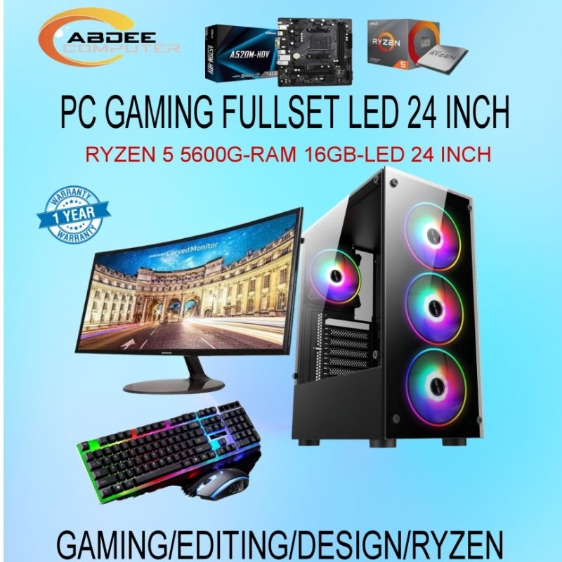 PC GAMING Fullset AMD Ryzen 5 5600G Ram 16 GB SSD 128 GB Led 24" Samsung Lengkap