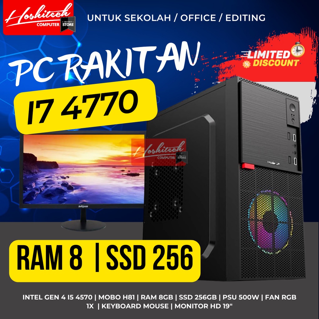PC RAKITAN I7 INTEL 4770 RAM 4GB SSD 256GB MONITOR 19 INCH MURAH