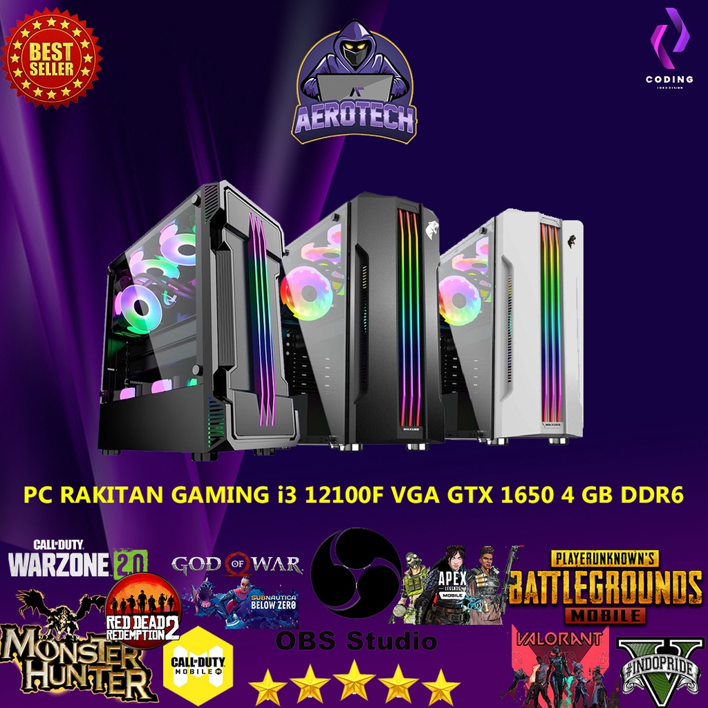 PC RAKITAN INTEL i3 12100F GEN 12 VGA GTX 1650 4 GB DDR6 SIAP GAMING EDITING RENDER LIVE STREAM