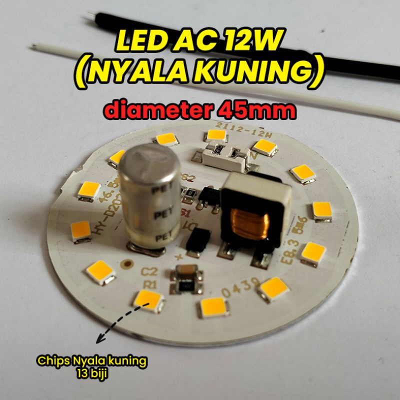 PCB Mata Lampu LED AC 12 Watt nyala kuning ini cocok untuk mengganti sparepart lampu LED yang rusak, cocok untuk segala merk yang penting ukuran diameter sama