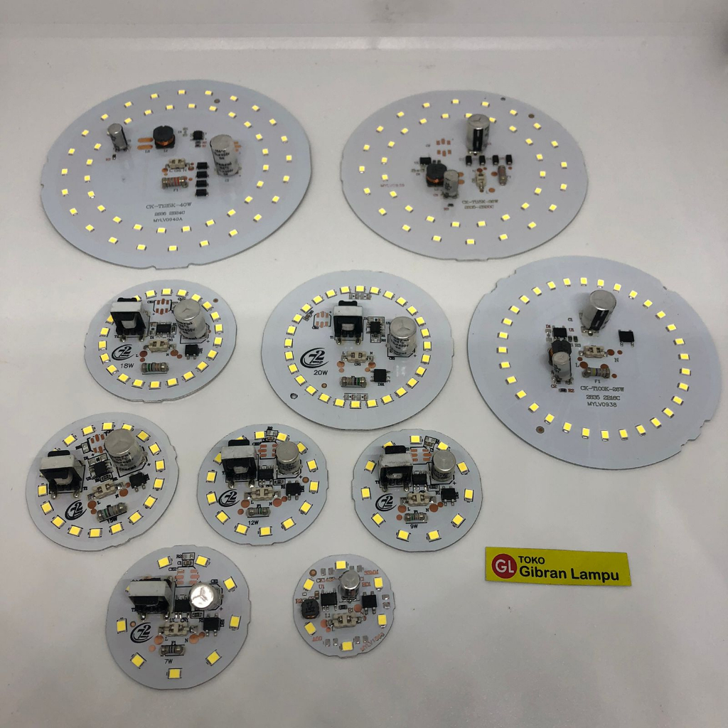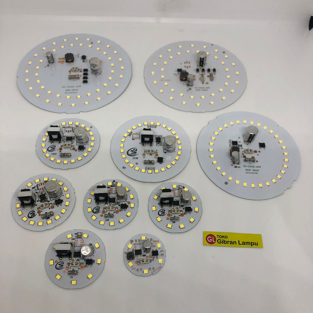PCB LED AC Premium Trafo - DOB Spare Part Lampu Plus Travo All Varian Watt, mesin mata LED yang langsung colok AC murah dan sudah berlapis alumunium tipis. Varian Watt dan diameter: 5w 33 mm 7w 45 mm 9w 45 mm 12w 45 mm 15w 52 mm 18w 59 mm 20w 75 mm 25w 96 mm 30w 111 mm 40w 122 mm