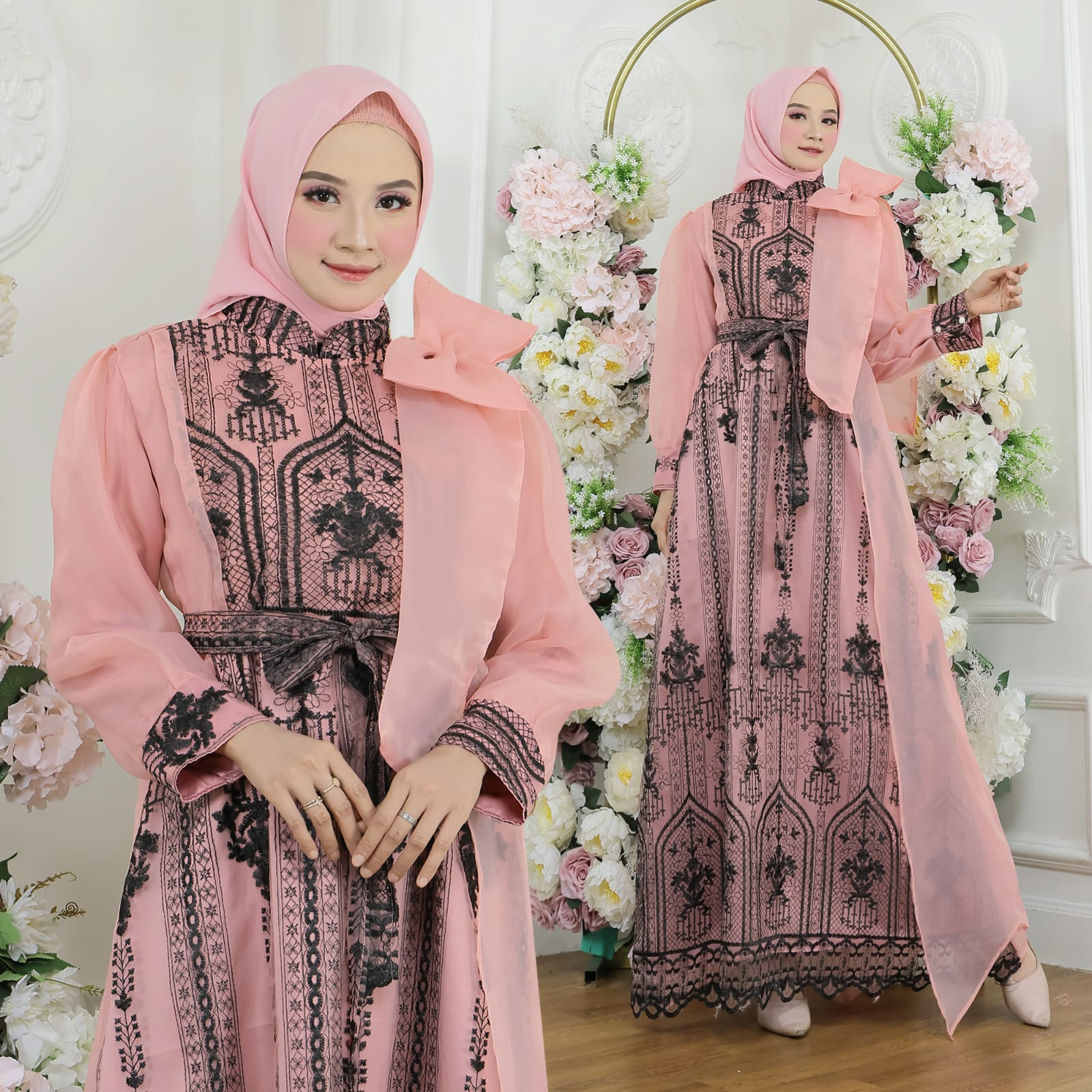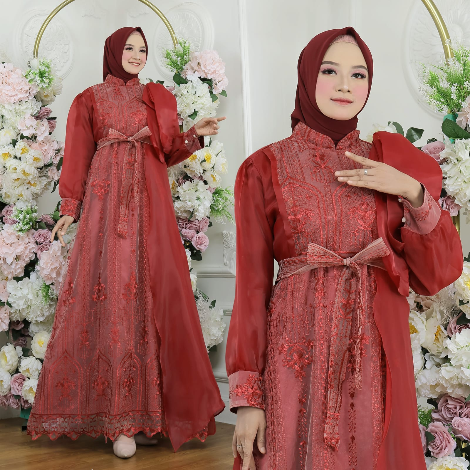 Detail PCS MAXY MELINDA BROCADE TULE PREMIUM FASHION BUSANA MUSLIM WANITA DRESS GAMIS MAXI MS