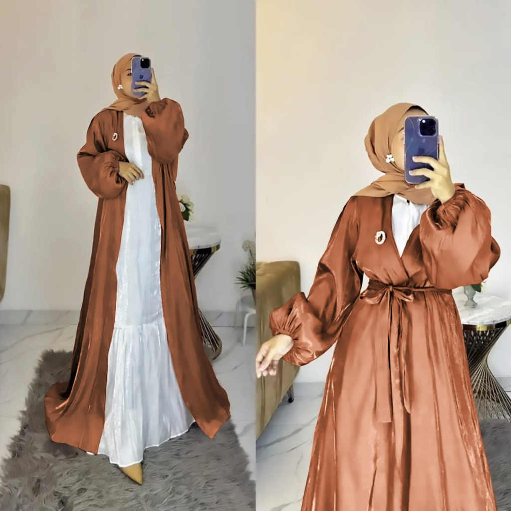 Detail : ⭐ Bahan Luna Shimmer Glossy Pergelangan Tangan Karet Free Tali Pinggang Pisah ⭐ Lebar Dada (LD) +/- 130cm Panjang Badan (PB) +/- 135cm ⭐ No Jilbab dan No Inner ⭐ UKURAN ALLSIZE