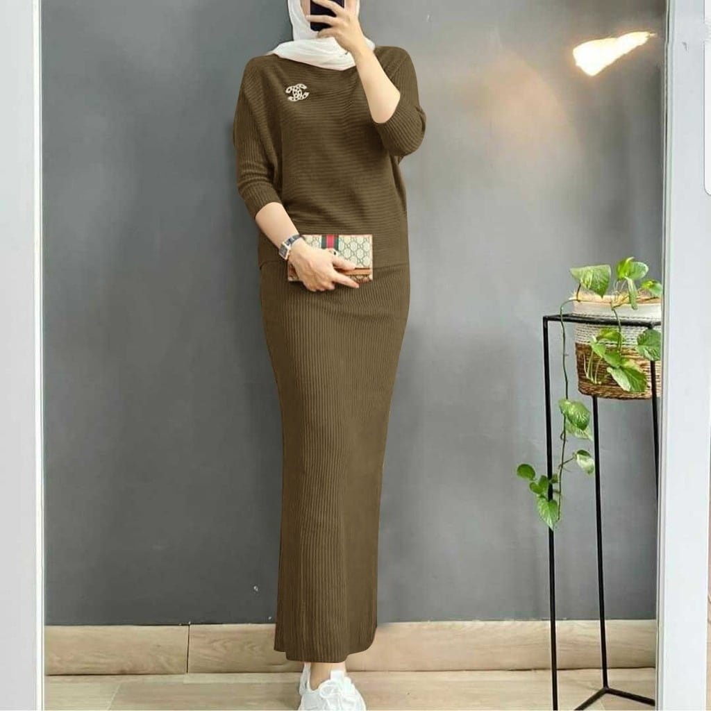 Detail : ⭐ Bahan Mango Knit Import ⭐ Atasan : Lingkar Dada (LD) +/- 112cm Lebar Pinggang (LP) +/- 108cm Panjang Badan (PB) +/- 68cm ⭐ Rok : Panjang +/- 94cm Lebar Pinggang (LP) +/- 130cm Pinggang Karet, Kancing Variasi ⭐ UKURAN ALLSIZE