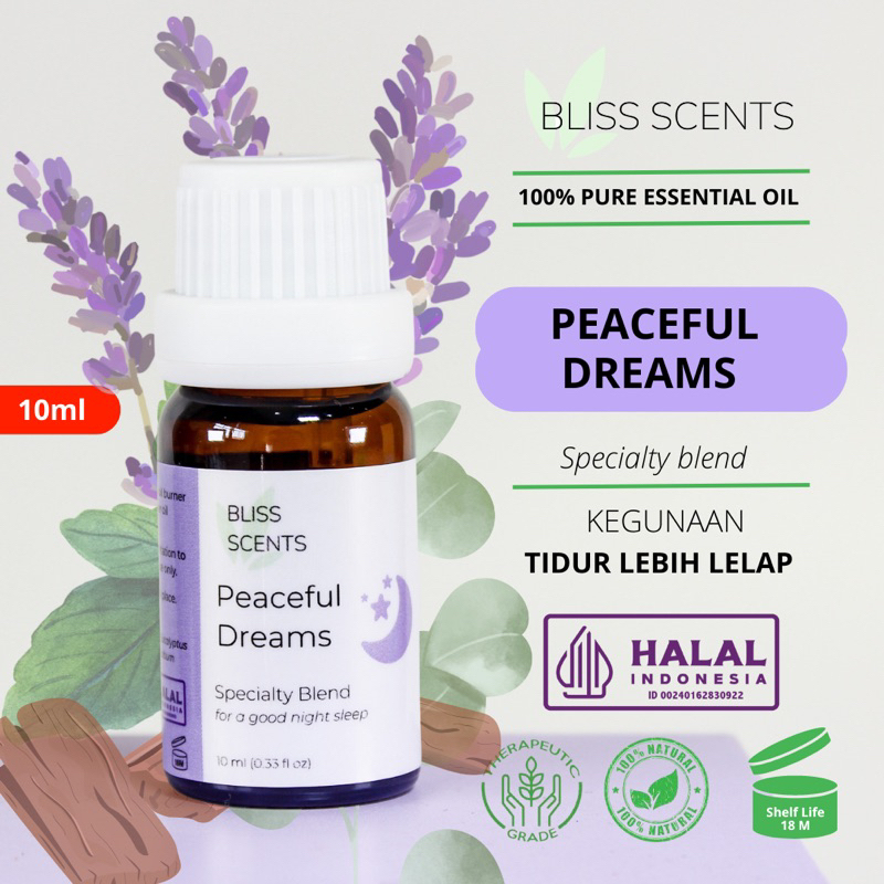 Manfaat Utama Peaceful Dreams: • Membantu menenangkan pikiran • Membantu tidur lebih lelap • Membantu menjaga kesehatan saluran pernafasan saat tidur
