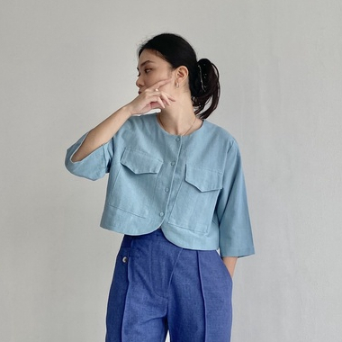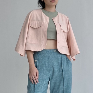 Detail Peach Poppy KARA Linen Premium Cropped Two Pockets Shirt - Atasan Linen Premium Wanita Detail 2 Kantong Hidup
