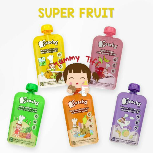 Peachy Fruit and Veggie Puree adalah makanan pendamping ASI berupa puree (makanan lunak) seperti bubur, terbuat dari buah dan sayuran segar.