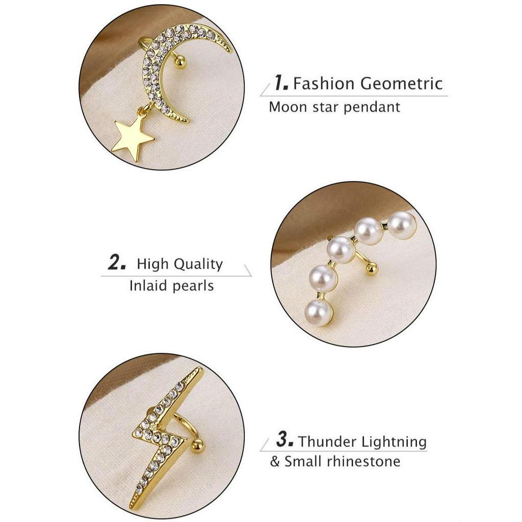 Video perkenalan produk Pearl chain Ear clip Non-hole Earrings Bohemian Crystal Stud Earrings For Woman Lightning Stars moon Fashion Jewelry. Sumber: Shopee.