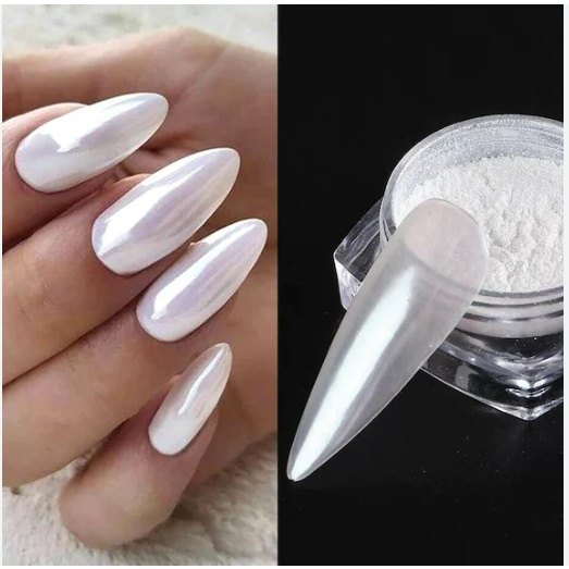 Detail pearl chrome powder nails/Pearl mermaid glaze donut nail aurora powder