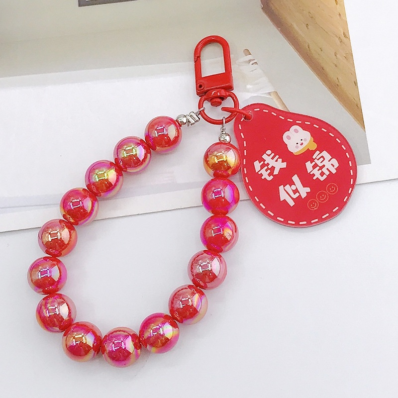 Handphone & Aksesoris > Handphone & Tablet Aksesoris > Tali & Gantungan Handphone > Pearlescent Merah Manik-Manik Bulat Rantai Dengan Label Salam Terbaik Ponsel Case Bluetooth Earphone Cover DIY Liontin Untuk iPhone Untuk Airpods Untuk Samsung Untuk OPPO Untuk Baseus Untuk Inpods