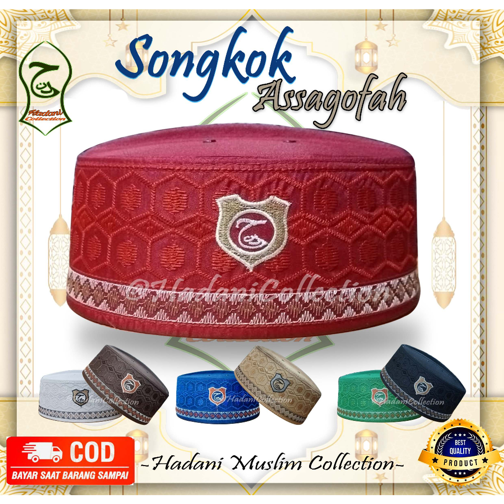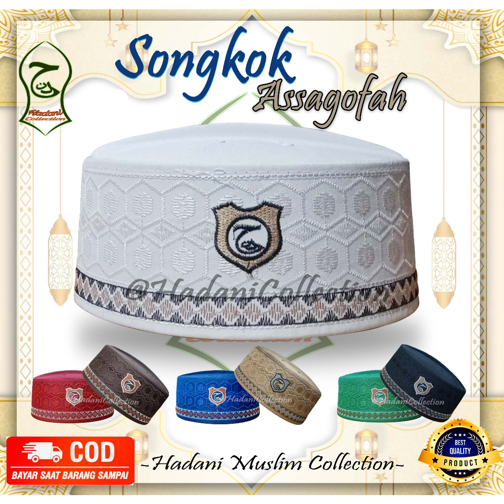 -Nama Produk: Peci Assagofah Terompah Full Bordir -Bahan: Spon dilapisi Kain Bordir -Motif/Style: Bordir Terompah -Penjelasan Spek Lainnya: Bahan Empuk, Kuat Kokoh sehingga tidak mudah rusak/penyok