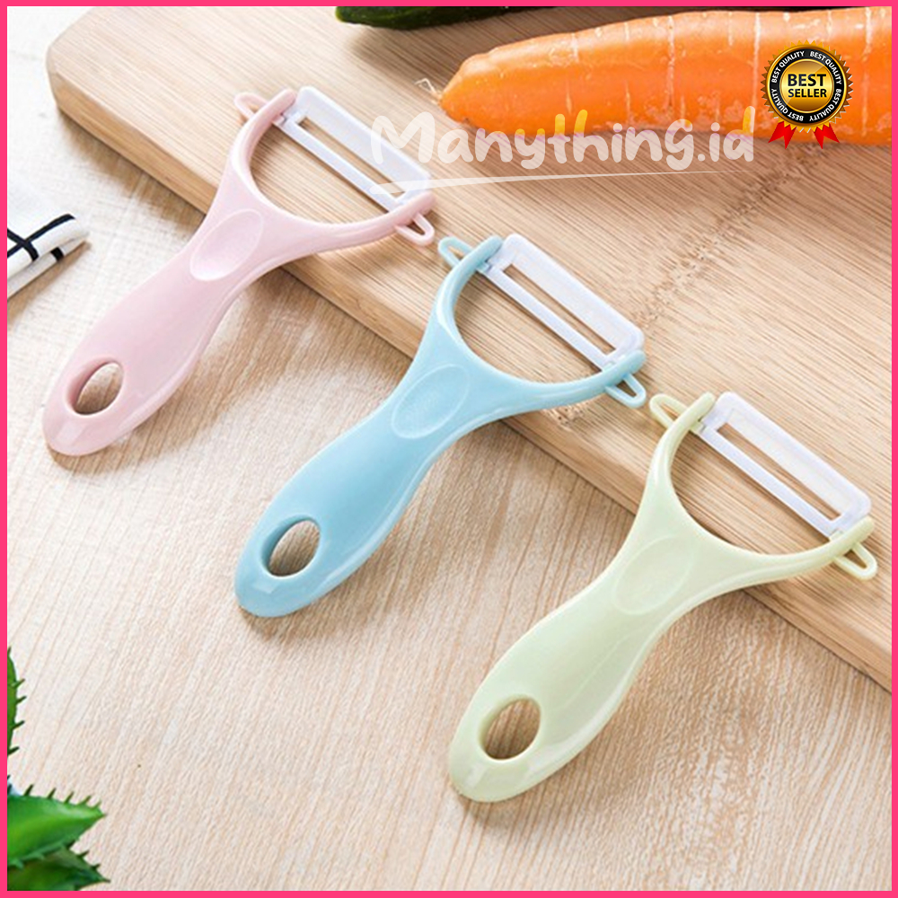 Alat praktis untuk mengupas kulit buah atau sayur, ringan dan tahan lama. Pisau dari keramik sehingga tidak berkarat ketika dicuci, sehingga aman untuk digunakan. #peeler #sayur #buah