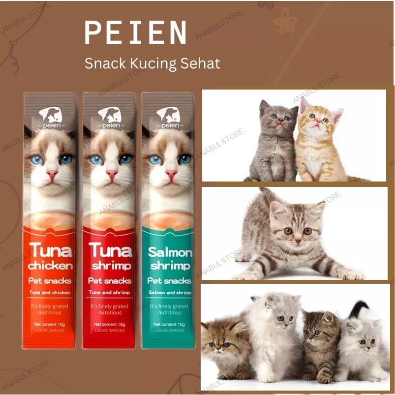 Peien cat snack adalah makanan ringan kucing premium yang dapat menambah nafsu makan kucing dan dapat menyehatkan bulu Varian Rasa SixFigure: - Salmon Shrimp (Blue) - Tuna Chicken (Orange) - Tuna Shrimp (Red)