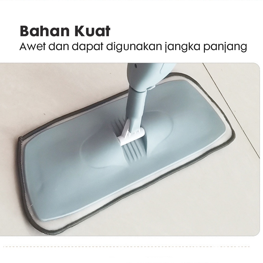 Keunggulan produk (varian HM1028): - Botol semprot 0.35L dapat digunakan untuk mengepel lantai hingga 100m2 - Serbaguna, dapat untuk mengepel lantai, mengelap kaca dan membersihkan lantai dari kotoran - Dapat diputar hingga 360 derajat , sehingga bisa digunakan di segala ruangan dan menjangkau berbagai sudut - Kain dari microfiber dengan daya serap tinggi - Mudah dibersihkan - Semprotan air luas merata ke segala arah - Panjang kepala pel besar sehingga dapat menjangkau area lebih luas. - Dapat digunakan di berbagai jenis lantai seperti kayu, ubin, marmer, vynil dll - Botol air dengan material PP plastik yang mudah untuk dipasang. - Kepala Pel yang terbuat dari bahan ABS yang lebih awet dan tahan lama.