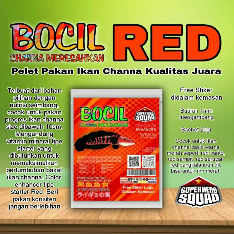 produk ini adalah pelet starter untuk pemula dengan kualitas pro juara. Di formulasikan khusus dan terbuat dari bahan pakan pilihan dengan protein tinggi dan color enhancer. Cocok untuk progres ikan channa size under 15cm. Mengandung vitamin dan mineral komplit yang dibutuhkan untuk memaksimalkan warna merah, sehingga membuat ikan CHANNA BOCIL anda MERESAHKAN.