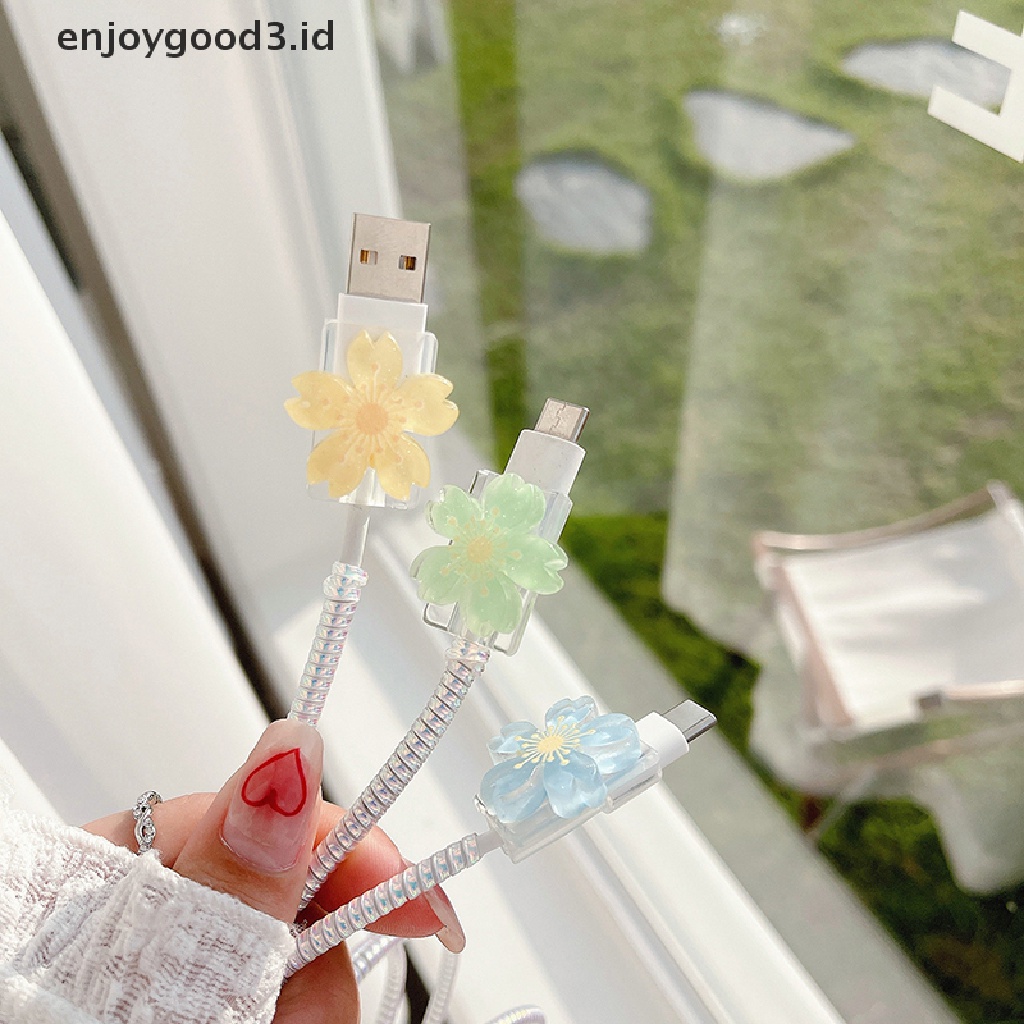 Pelindung Kabel Data / Charger Usb Tipe C 13 Model Bunga Untuk Iphone / Android