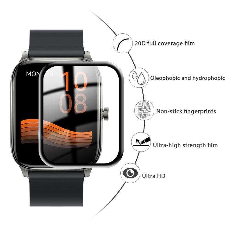 Lapisan anti minyak melindungi jam tangan pintar dari air, minyak, atau tetesan hujan. Sidik jari berkualitas tinggi - layar tahan dengan transparansi tinggi menjaga warna dan kecerahan asli.Spesifikasi:
