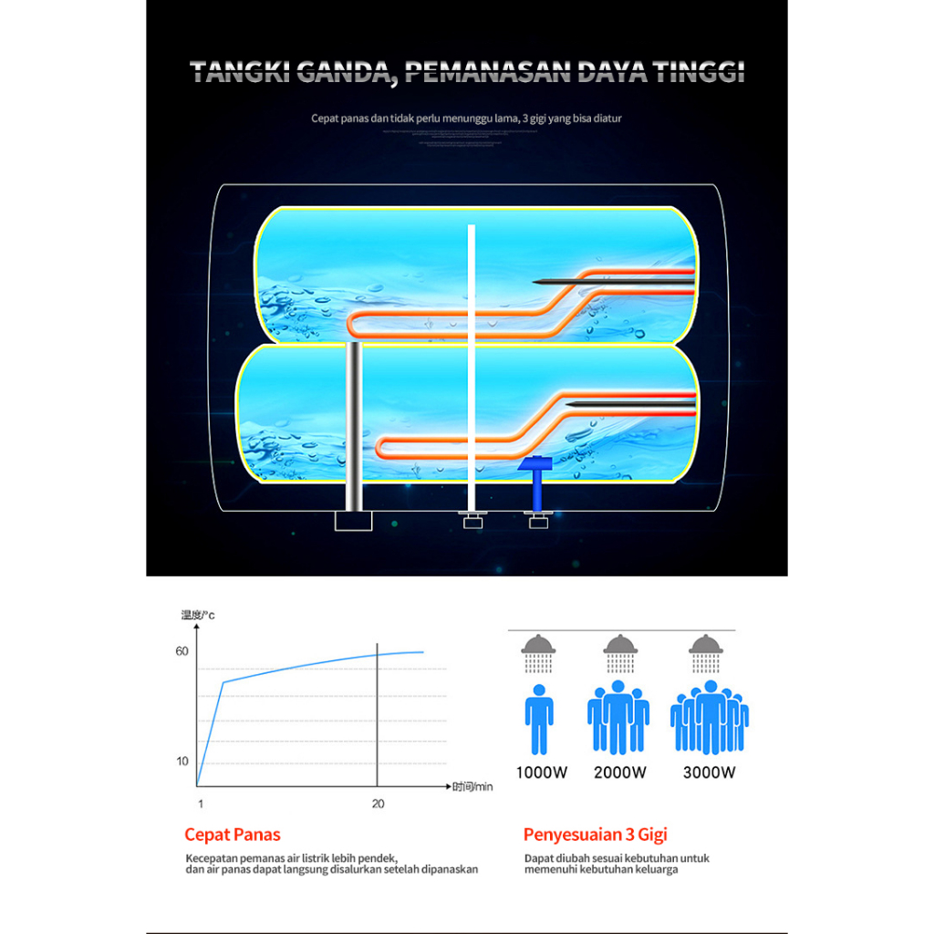 Detail Pemanas Air Water Heater Listrik 40 Liter 3000W / Heater mandi air panas / Pemanas air kamar mandi