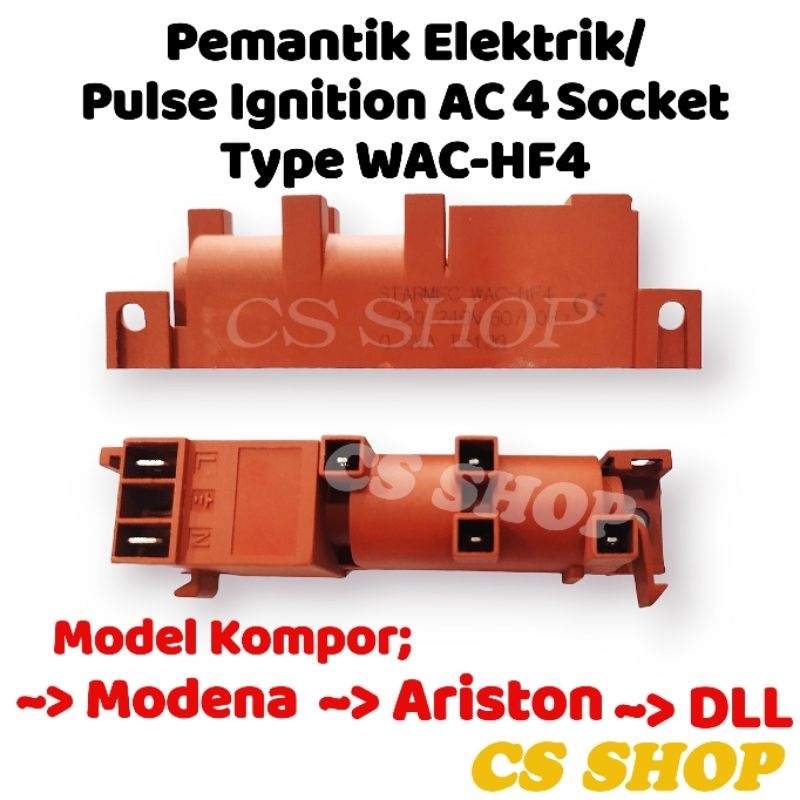 Pemantik Kompor Gas Ariston Ac 220V 4 soket - Pulse Ignition -S Deskripsi PULSE IGNITION AC-220V 4-SOCKET STANDAR QUALITY PARTS FOR GAS STOVE IGNITION dapatdigunakan untuk kompor Modena, ariston untuk Drayer dll