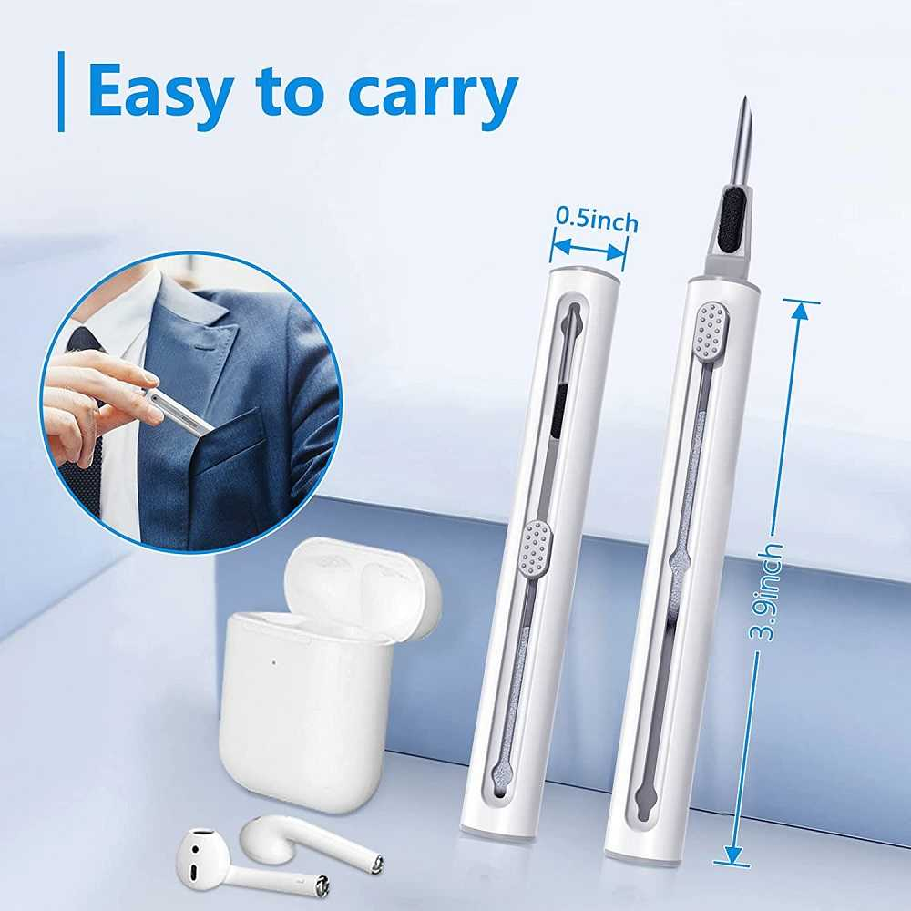 Menjaga kebersihan barang elektronik Anda merupakan satu hal yang penting. Salah satu barang yang paling sering Anda gunakan setiap hari adalah airpods atau earphone, untuk itu Anda harus membersihkanya menggunakan pembersih earphone dari Keyvovo. Tersedia spons, sikat dan metal nib yang bisa Anda gunakan untuk membersihkan earphone Anda hingga bagian yang sulit dijangkau. Memiliki desain portabel yang bentuknya seperti pulpen sehingga akan sangat mudah untuk Anda bawa ke mana pun Anda pergi. Alat ini juga bisa Anda gunakan untuk membersihkan kamera, keyboard, hingga ponsel. Fitur