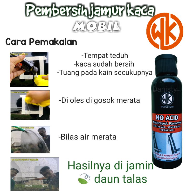 Garansi uang kembali jika gagal membersihkan jamur kaca mobil anda. Aman digunakan pada permukaan kaca mobil Jepang maupun mobil Eropa. Hati-hati! Sebagian besar produk pembersih jamur kaca yang ada di pasaran mengandung asam yang jika sedikit saja anda melakukan kesalahan dalam proses pengaplikasiannya justru akan merusak kaca mobil anda secara permanen.
