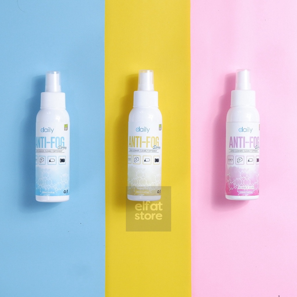 Daily anti fog spray merupakan produk yang diciptakan untuk membantu dalam menyelesaikan masalah embun pada kacamata saat memakai masker, pada visor, spion saat hujan dan juga lensa kamera. Selain itu spray ini dapat membersihkan kotoran serta merawat kaca.
