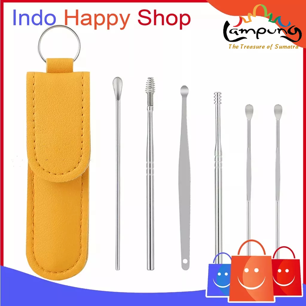 Detail โญ๏ธ๐๐๐ ๐๐๐ ๐๐๐ฆ๐ฉ๐ฎ๐ง๐ โญ๏ธPembersih Telinga Korek Kuping Ear Wax Picker Set 6pcs Stainless Steel Anti Karat Free Pouch