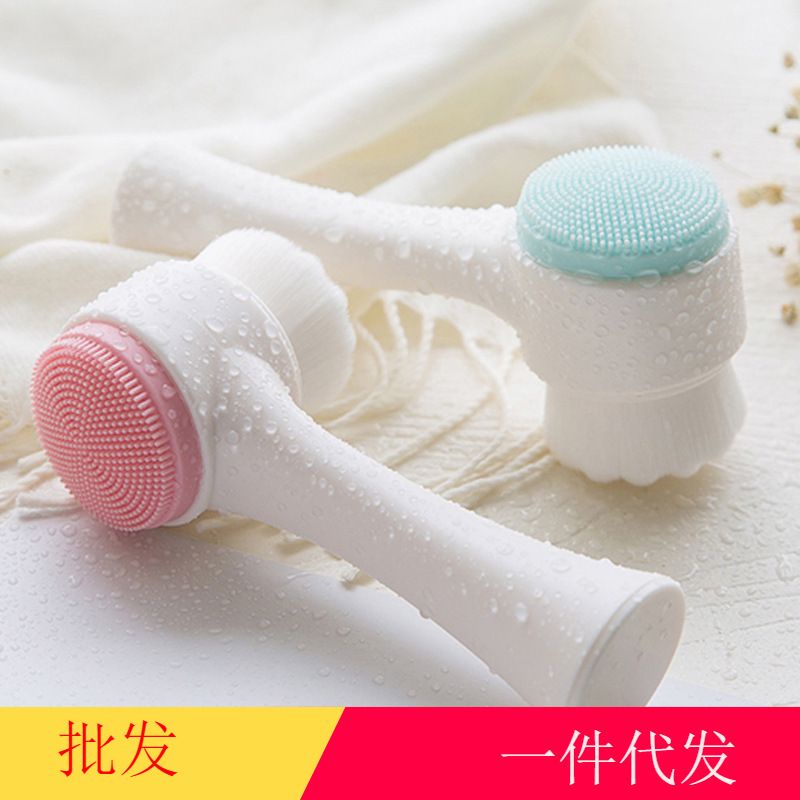 Detail pembersih Wajah Silikon 2 sisi gagang Alat Cuci Muka Sikat Wajah Facial Brush face brush cleansing