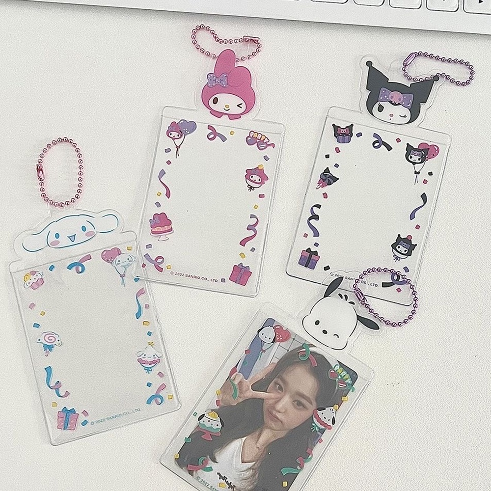 Buku & Alat Tulis > Perlengkapan Sekolah & Kantor > Lanyard & Name Tag > Pemegang Kartu Renda Sanrio Lucu Rantai iwith Kartun Transparan Card Case Untuk Idol Photocard Pelindung Name Tag Staionery