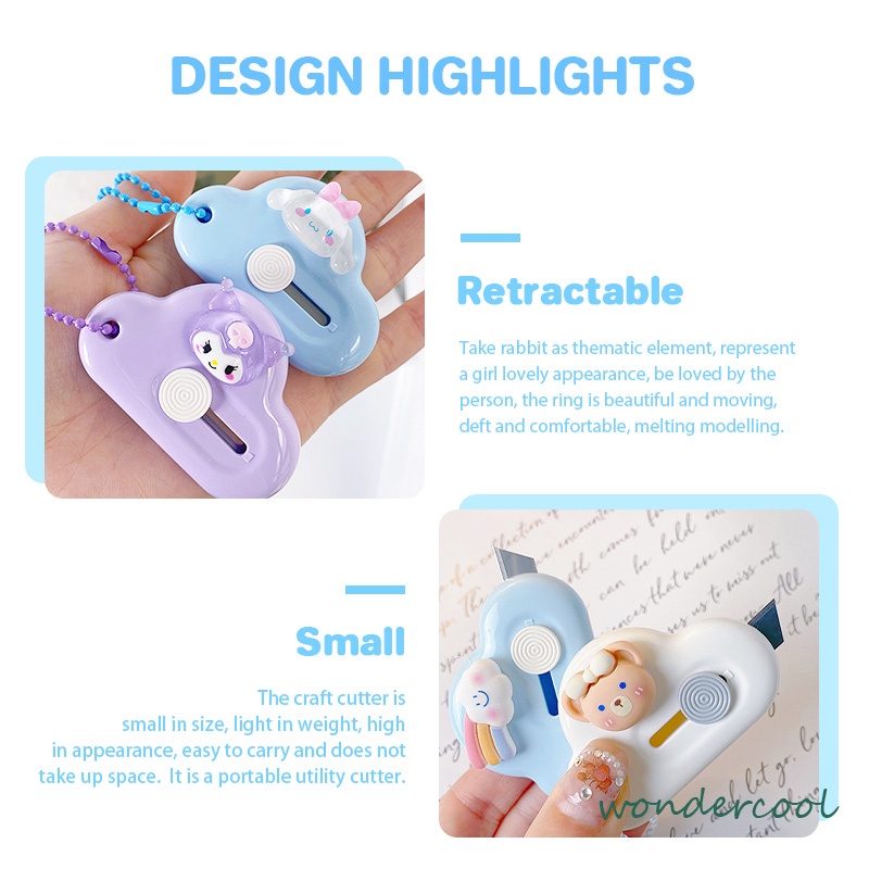 Fitur Kartun Lucu, Kertas Pemotong, Portabel, Ringkas, Ringan, Kerajinan DIY, Dapat Ditarik, Lubang Gantungan Kunci Desain Gantungan Kunci: Desain lubang gantung, memungkinkan penyimpanan tetap dalam jangkauan cepat, mudah digenggam, digunakan, dan dibawa, secara efektif mencegah kehilangan. Kecil: Pemotong kerajinan berukuran kecil, ringan, penampilannya tinggi, mudah dibawa dan tidak memakan tempat. Ini adalah pemotong utilitas portabel. Dapat ditarik: Pemotong kotak dirancang secara unik, dengan mekanisme halus yang dapat meluncur dengan mudah, ada slot kartu di ujung depan, saat menggunakan, dorong bilah ke slot untuk memperbaikinya, dan dapat ditarik kembali untuk memastikan keamanan setelah digunakan. Kesempatan: Pisau kerajinan memiliki berbagai macam kegunaan dan merupakan penolong yang baik untuk kehidupan, belajar dan bekerja. Seperti memotong selotip, decoupage dan membuka surat untuk penggunaan di kantor dan di rumah. Kualitas: Pemotong kotak yang dapat ditarik terbuat dari plastik dan pisau stainless steel, yang tahan lama, tidak mudah berkarat, dipotong dengan rapi, dan dapat digunakan untuk waktu yang lama.