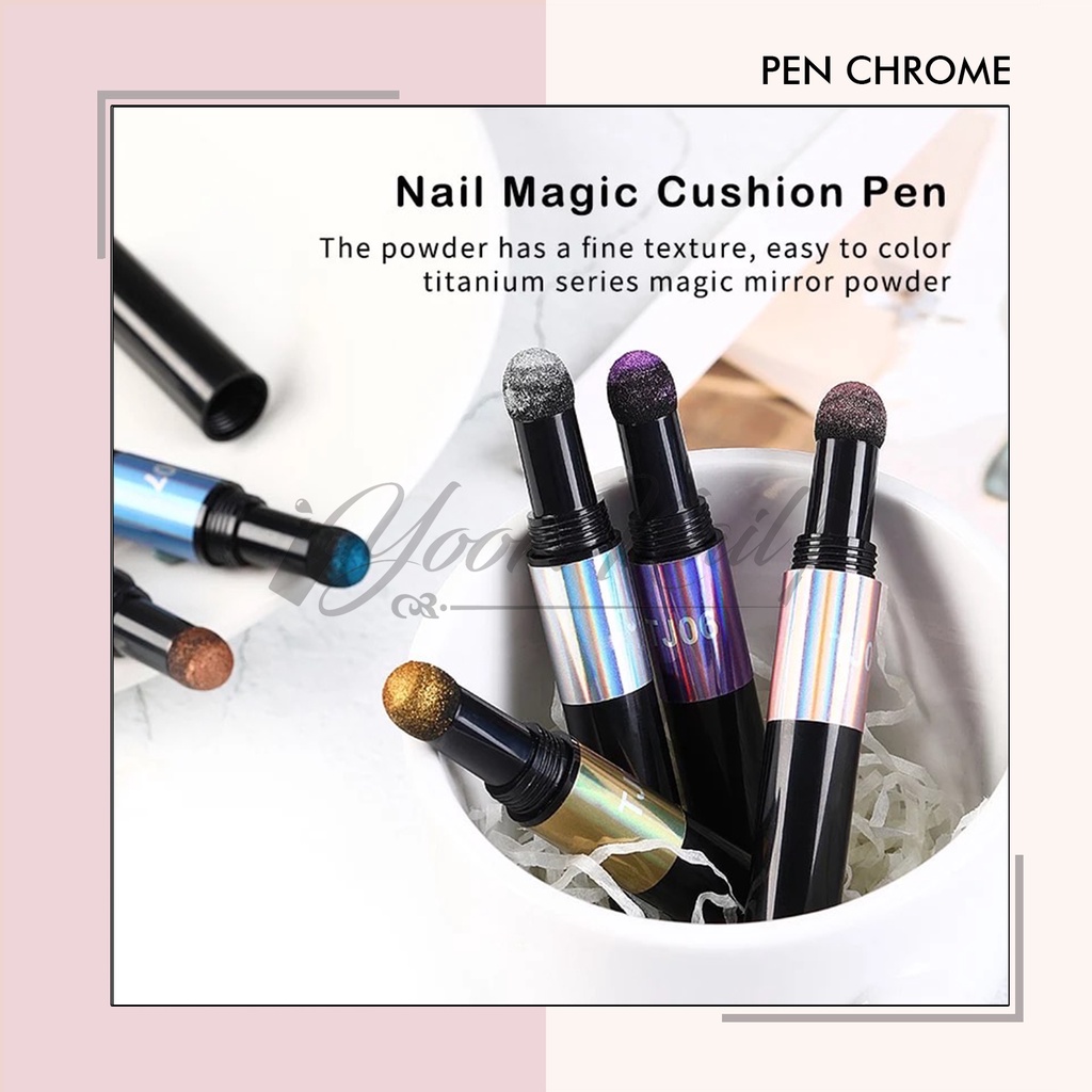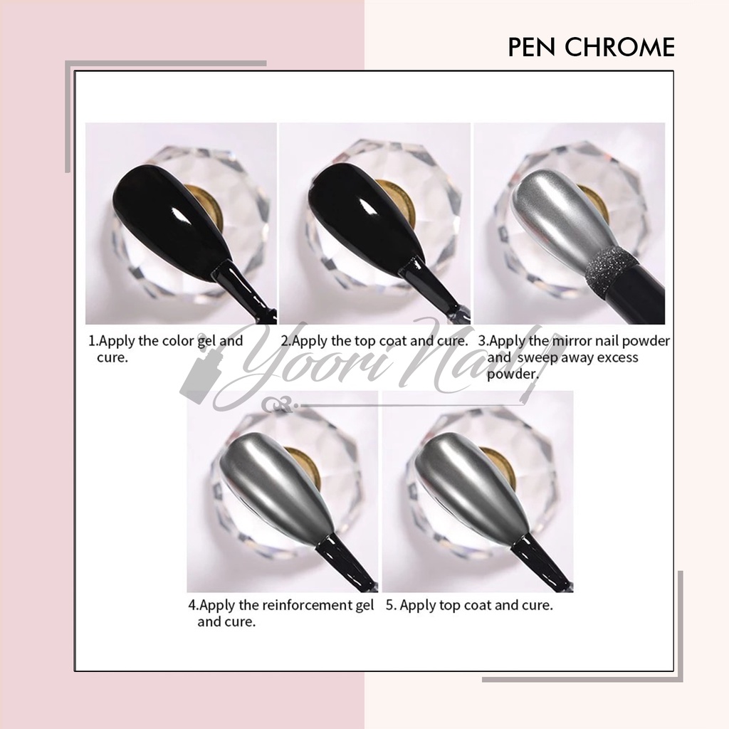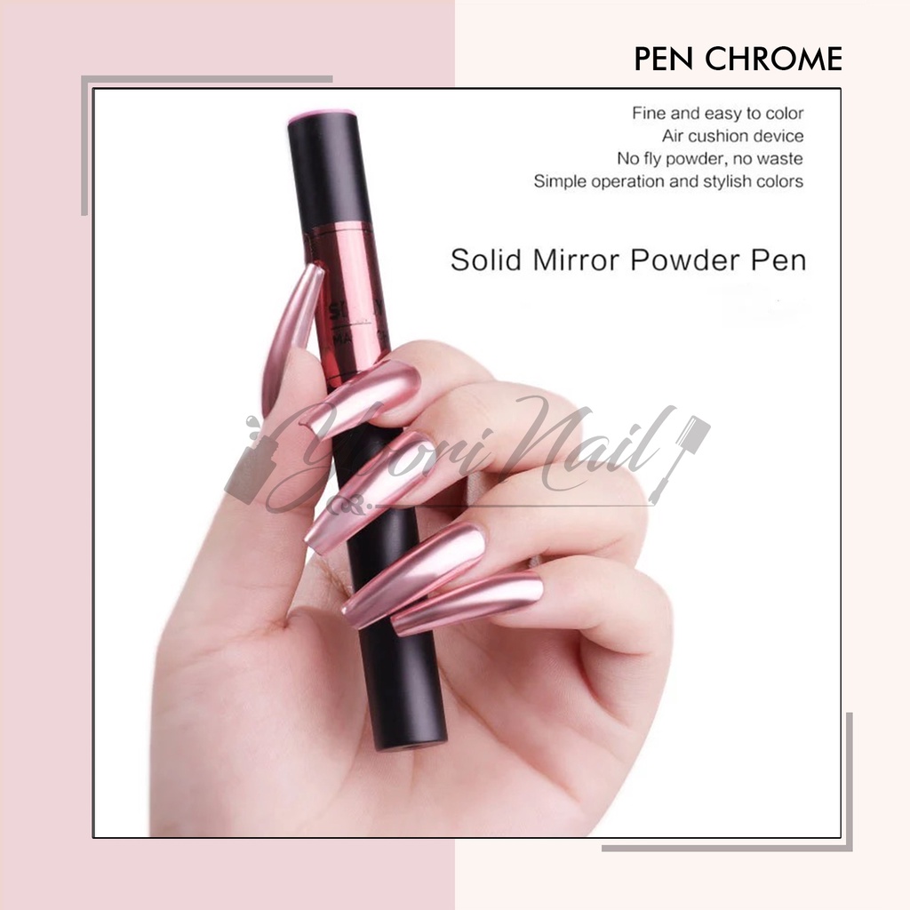 Pen chrome powder yang memberikan efek mirror (mirror effect nails), di western produk ini lg hype banget loh, so jangan ketinggalan yaa... percantik kukumu dengan mirror effect ini :) Untuk hasil terbaik gunakan dengan kutek gel