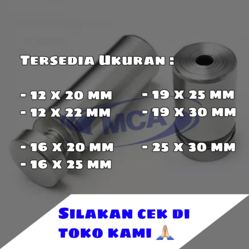 DESKRIPSI PRODUK : - Diameter pen : 25mm - Tinggi pen : 20mm - Diameter baut : 10mm - Bahan stainless steel