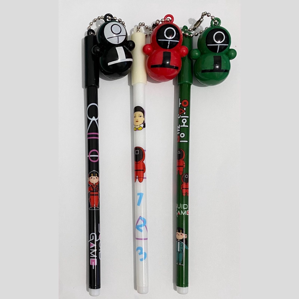 pulpen import dengan gantungan tersedia 2warna: - tinta biru - tinta hitam ada beberapa karakter dan warna . warna pada gambar dikirim secara random . produk akan dikirim berdasarkan pilihan warna tinta dan karakter saja