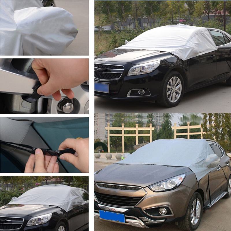 Kover untuk menutup kaca depan, kaca samping dan juga spion mobil Anda. Cocok digunakan untuk melindungi mobil dari panas matahari, paparan UV dan debu. Cover mobil ini disangkutkan pada bagian ban mobil. Memiliki ukuran 250 x 116 cm.