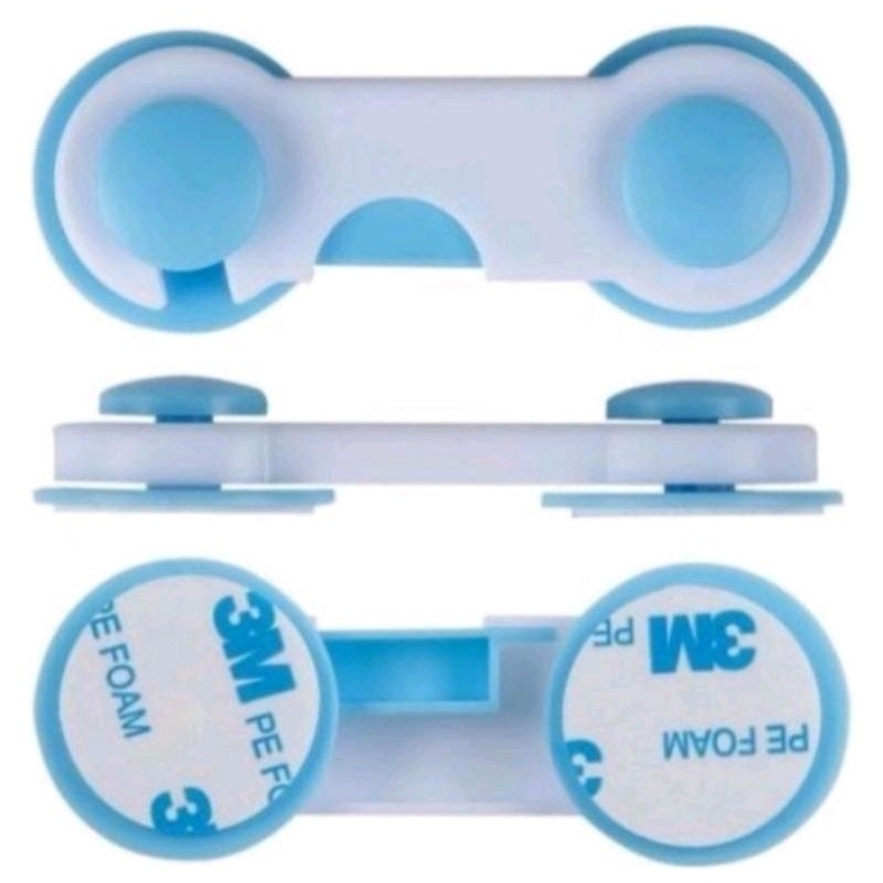 Pengaman pintu lemari laci / safety lock Kunci pengaman untuk anak dan balita agar tidak bisa membuka pintu lemari, laci dan kulkas. Untuk membuka cantelannya harus dengan menekan warna bagian bawah sehingga tidak mudah bagi anak balita membuka nya