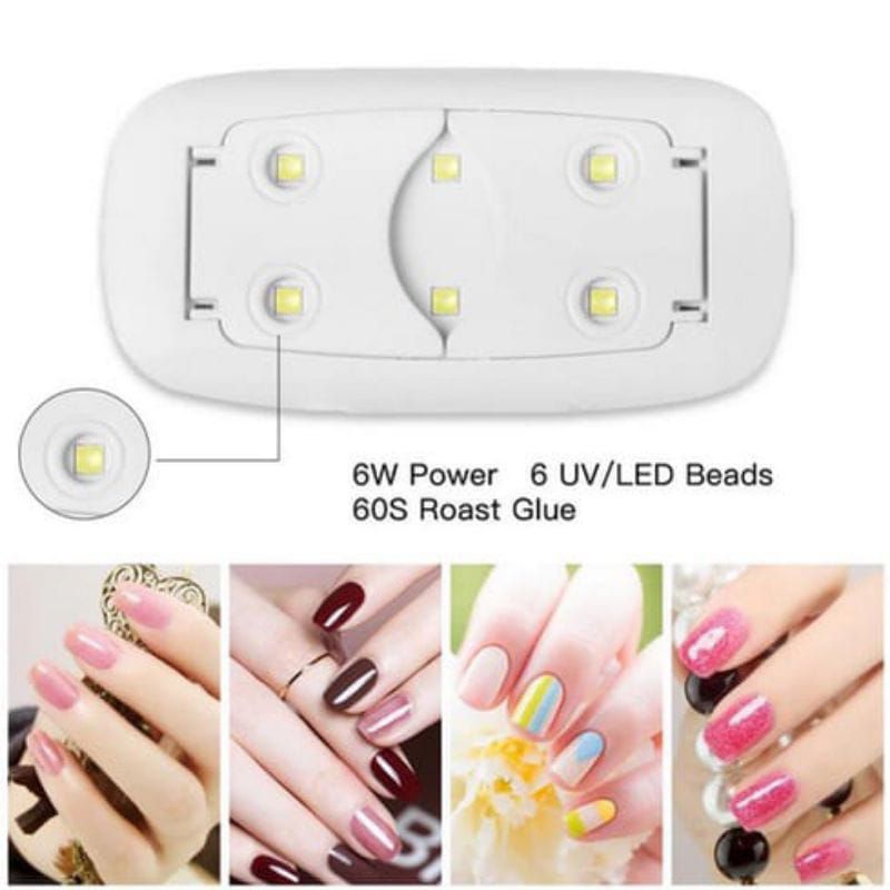 FITUR: 📌Desain ruang yang cukup besar untuk lebih mudah untuk mengeringkan 5 kuku. Cahaya yang dipancarkan dari alat ini lebih dekat dengan cahaya putih yang tidak membahayakan mata atau kulit. 📌Alat ini berfungsi untuk mengeringkan kutek kuku dengan menggunakan lampu LED Ultraviolet. Nail art Anda menjadi lebih cepat kering dalam waktu cepat. 📌Kering Dalam 30 Detik Cukup nyalakan alat ini dalam durasi waktu 30 detik dan letakkan kuku pada bagian sinar ultraviolet. Dalam 30 detik kutek kuku / nail air Anda akan kering. 6 LED Enam Buah LED Ultraviolet membuat kutek kuku menjadi lebih cepat kering. Mudah Digunakan Cara menggunakan alat ini sangat mudah, cukup tekan dan tahan tombol power pada bagian atas dan letakkan kuku pada sinar LED.