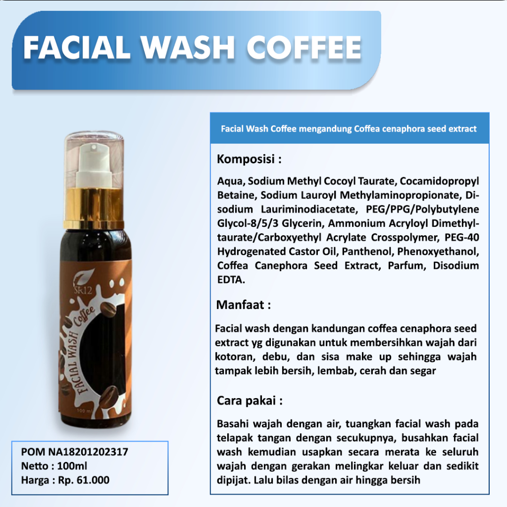Detail PENGHILANG FLEK HITAM PALING AMPUH ! FACIAL WASH COFFEE SR12 BPOM ORIGINAL / SABUN CAIR KOPI / MEMBERSIHKAN KOTORAN DI WAJAH