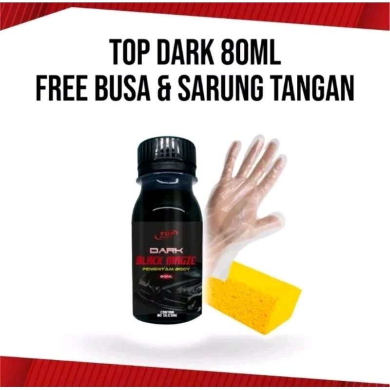 Cara Penggunaan Top Dark Black Magic : 1. Kocok botol TOP DARK BLACK MAGIC 2. Cuci Bersih bagian yang akan Dihitamkan, lalu Keringkan. 3. Gunakan Sarung Tangan lalu Tuangkan Cairannya ke Busa Pad Applicator / Lap Microfiber. 4. Oleskan bagian yang akan Dihitamkan. Oleskan secara berlapis sampai hitam sempurna. 5. Tunggu kering sekitar 1-2 Jam / 12 jam Untuk Kering Sempurna. 6. dan Selesai HITAM SEPERTI BARU