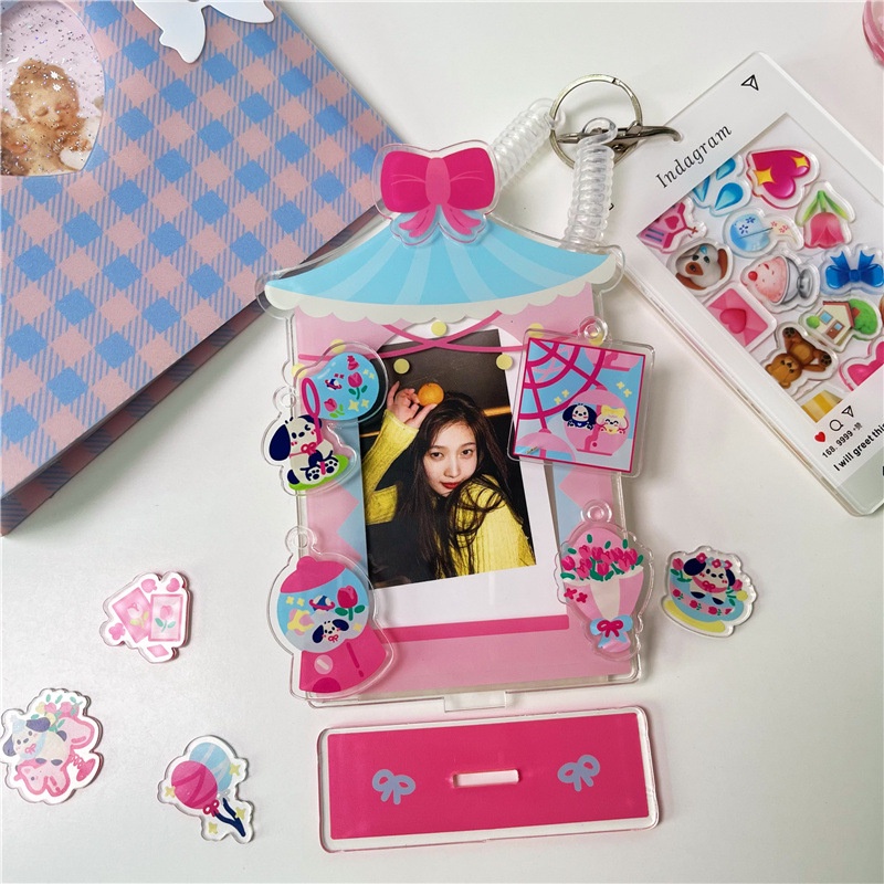 Detail < Pengiriman Cepat > Korean 3inch Acrylic Photo Frame Card Holder Dengan Hiasan Kartun Lucu Idol Photocard Desktop Display Frame Card Pelindung Case