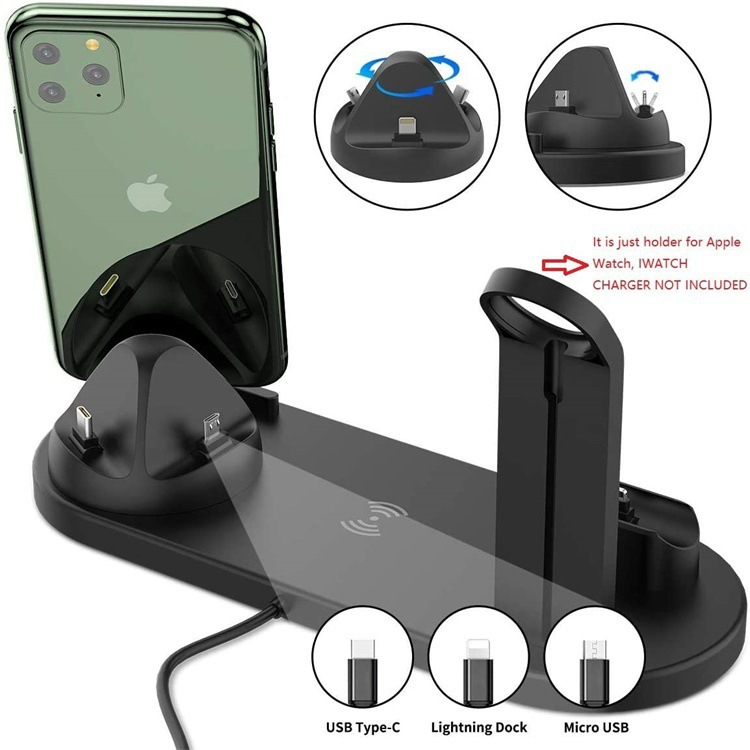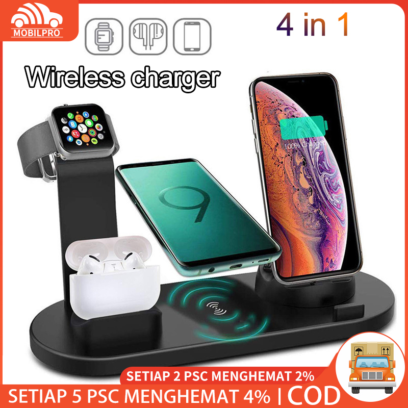 Pengisi Daya Nirkabel 4 in 1 Untuk Ponsel Pengisian Dock Station Kompatibel Watch Charger Micro USB Type-C