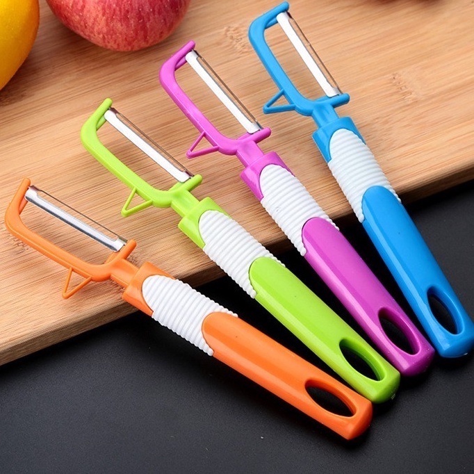 Warna : * Hijau * Biru * Orens Pisau dengan bahan stainless steel anti karat untuk mengupas kulit buah dan sayur dengan gagang panjang 2-warna. Di bagian samping gagang disediakan lubang untuk tempat menggantungkan pisau saat tidak dipergunakan. Pisau pengupas kulit buah-buahan dengan gagang panjang warna. Di bagian samping gagang disediakan lubang untuk tempat menggantungkan pisau saat tidak dipergunakan