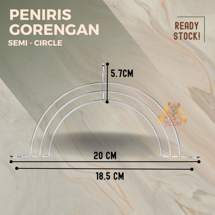 Detail peniris panci 18cm saringan gorengan HALF CIRCLE stainless TEBAL