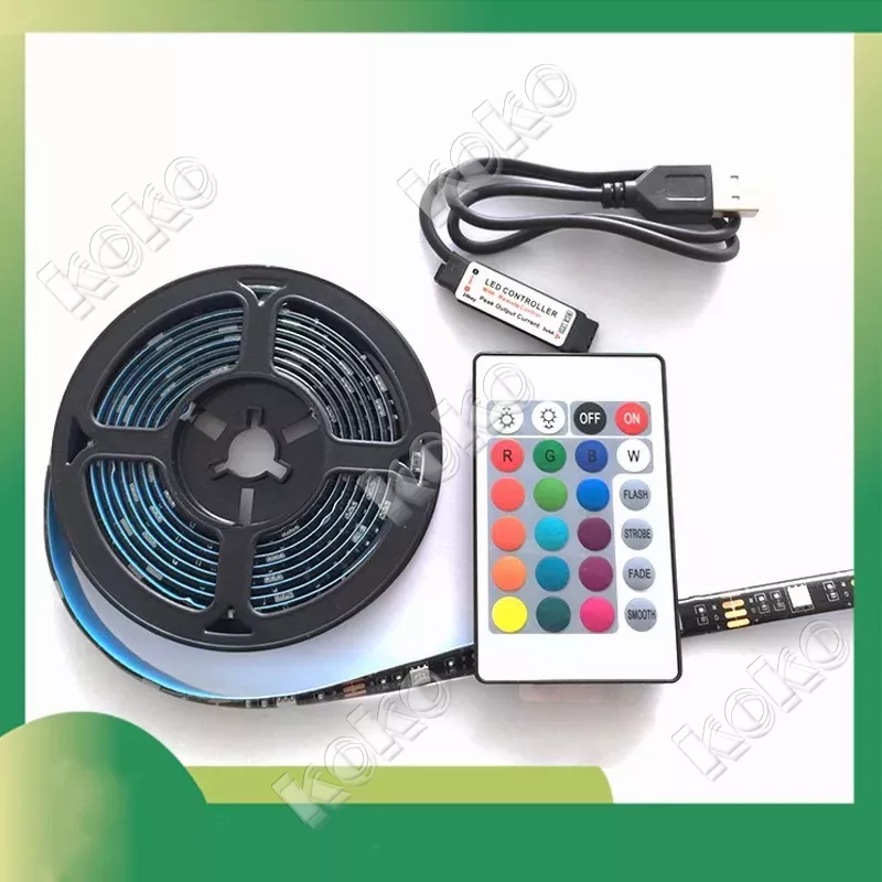 5M 2835 RGB Strip Tahan Air + IR 24Key Remote Kontrol + 12V 1A Power Supply + 1 penerima inframerah