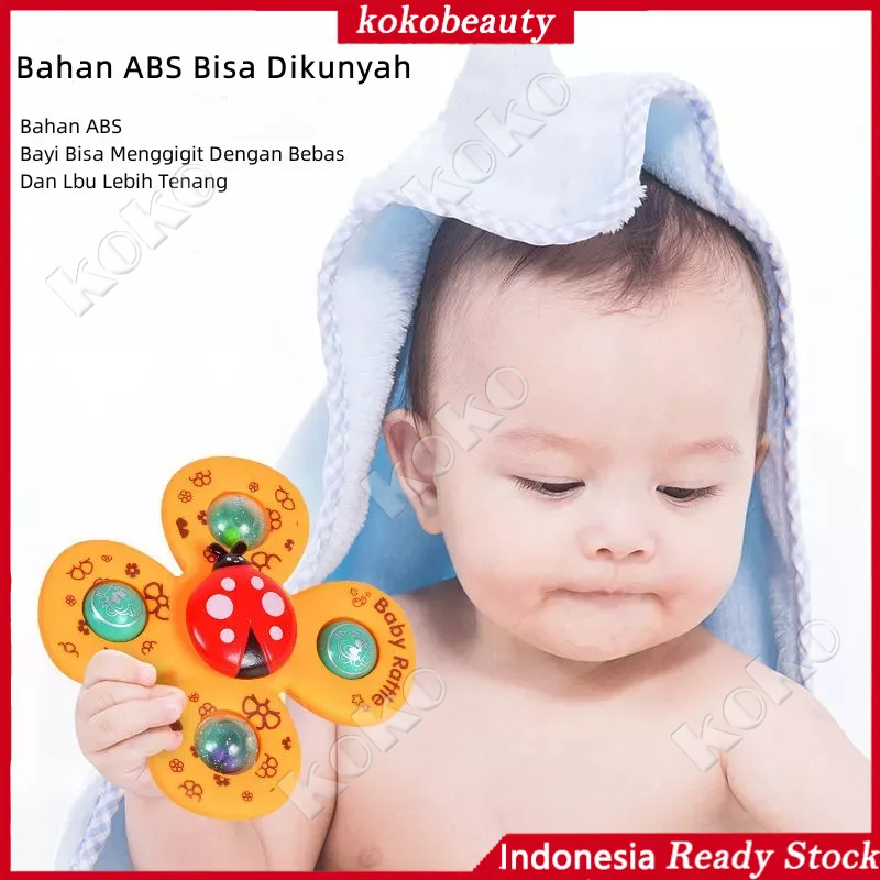 Detail 【Penjual Lokal】3PCS Anak Suction Cup Spinning Mainan Bayi Menyenangkan Rattle Teether Mainan Mandi Bayi Spinning Top Bayi Pendidikan Awal 0-3 Tahun COD