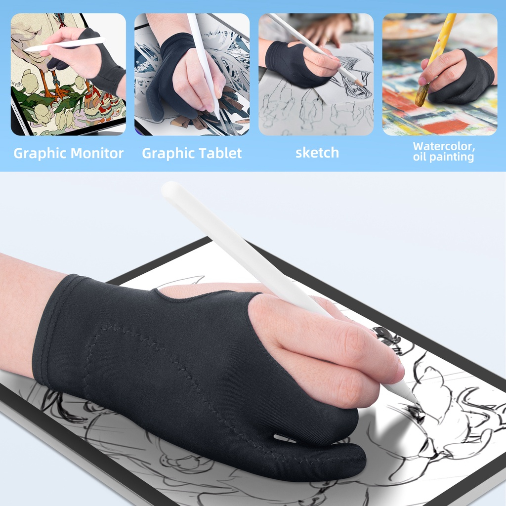 1. Sarung tangan dua jari, memungkinkan Anda menarik lebih nyaman dan bergaya anti-fouling, cocok untuk desain profesional, tablet grafis, dan tampilan panel datar, dll.