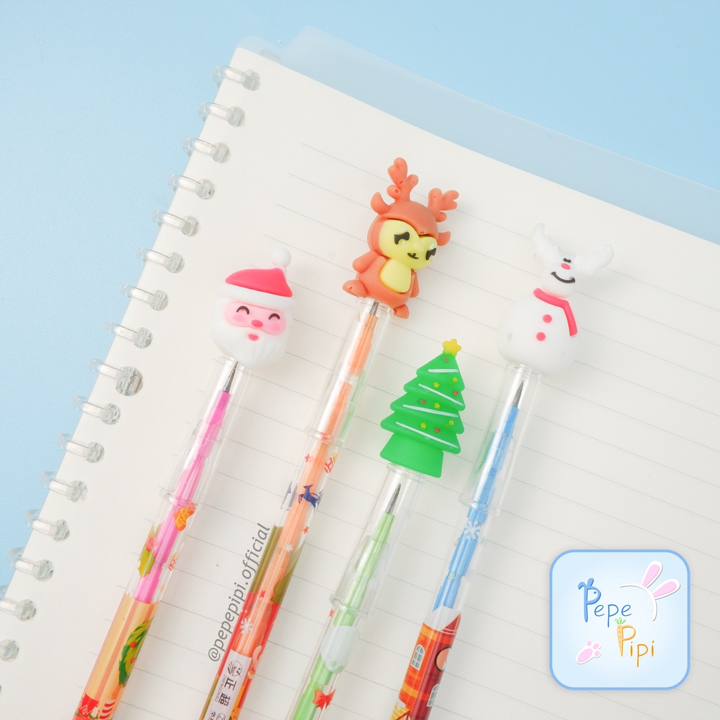 Pensil susun natal ini bisa diisi ulang yaa Tersedia 4 varian: santa rusa pohon snowman