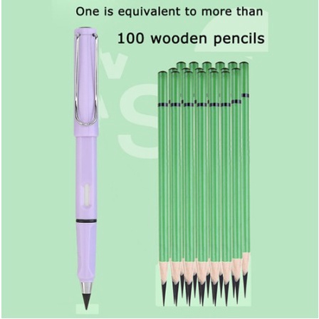 Teknologi baru pensil tanpa batas yang bisa bertahan sampai selamanya bisa menulis 500.000 karakter terus menerus. Tidak perlu mengasah pensil lagi, isi ulang tidak akan pecah dan bisa untuk diganti. Memiliki tingkat ketajaman warna HB nib dan ketebalan 0.5mm. Tulisan halus, tidak ada tinta, tidak ada tangan yang kotor. Dengan desain yang ergonomis sangat nyaman untuk digunakan. Terdapat penghapus didalam tempat pensil,sehingga lebih praktis untuk dibawa.