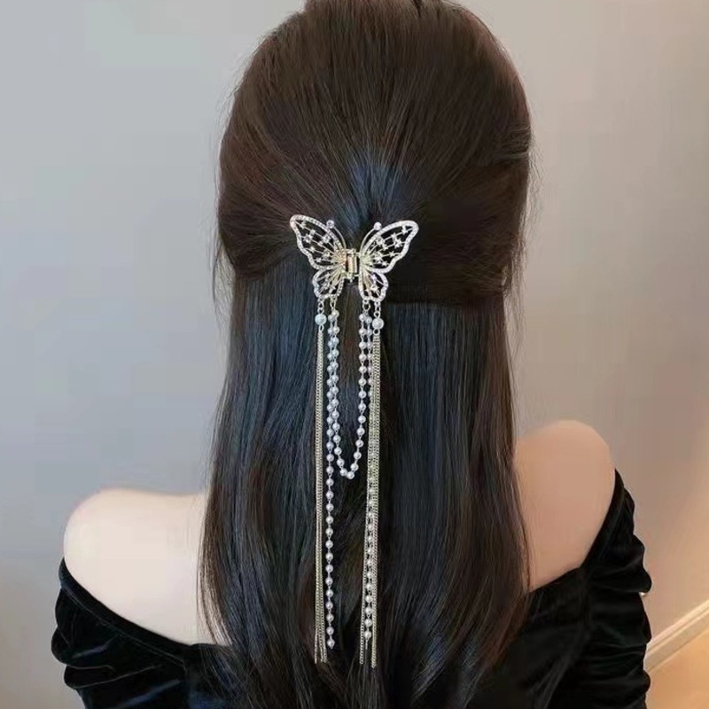 Video perkenalan produk Penuh Berlian Potongan Kupu-Kupu Fringe Jepit Rambut Hiu Klip Bulang Temperamen Indah. Sumber: Shopee.