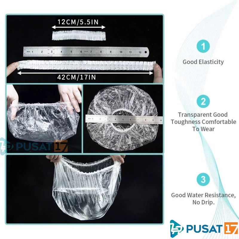 FITUR : 👉 PLASTIK KUALITAS 👉 MEMAKAI KARET GANDA 👉 COCOK UNTUK MANDI , CAT RAMBUT, DAN BISA DIJADIKAN COVER SEPATU SAAT HUJAN